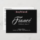 Anuncie o seu noivado com este design simples em preto e branco. Ele finalmente colocou um anel nisso. Agora ele não é mais o seu namorado, mas seu noivo. Personalize com nosso modelo fácil de usar. Adicione seus nomes, data do casamento e local. No verso, você pode incluir seu endereço de retorno e uma breve mensagem pessoal.
