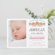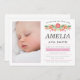 Envie aos seus amigos e familiares a maravilhosa notícia da chegada do seu pequeno com estes cartões de anúncio de nascimento personalizáveis. Um design moderno maravilhoso com flores e bordas. Anúncio de menino também disponível neste estilo.