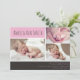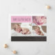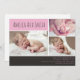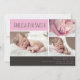 Envie aos seus amigos e familiares a maravilhosa notícia da chegada do seu pequeno com estes cartões de anúncio de nascimento personalizáveis. Um design moderno maravilhoso com texto bloqueado em rosa e cinza e 3 fotos do seu novo bebê. Bebê menino também disponível neste estilo.