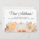 Você vai para casa em breve? Este charmoso cartão móvel é decorado com abóboras aquáticas, folhagem de outono e flores. Diz "Novo Endereço" na tipografia de na moda. Facilmente personalizável. Original Watercolor © Michele Davies.