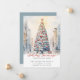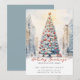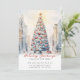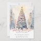Este anúncio festivo de mudança para o feriado de Natal apresenta o ditado "Saudações de Fim de Ano da Nossa Nova Casa" com uma bela rua da cidade nevada em aquarela com uma grande árvore de Natal. O anúncio é perfeito para enviar a amigos e familiares durante a temporada de festas para que saibam sobre o seu novo endereço. A frente do anúncio apresenta o ditado e a cena de rua da cidade nevada em aquarela, e inclui o seu novo endereço e informações de contato. O design geral é festivo e charmoso, e o anúncio certamente colocará um sorriso nos rostos dos seus entes queridos.