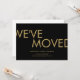 Este divertido cartão de anúncio de mudança de casa, preto e dourado, pode ser personalizado com o seu novo endereço e detalhes de contato. Desenhado por Thisisnotme©