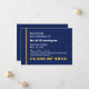 Este design com o fundo azul da meia-noite e sotaques dourados é uma escolha elegante para as suas necessidades de lançamento do formandos. Todo texto é personalizável. A parte traseira pode ser modificada se você quiser adicionar detalhes da parte. Você também pode alterar a cor do texto para uma aparência diferente. Experimente com diferentes papéis para ter a aparência que quiser.