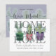 Deixe seus amigos e familiares saberem seu novo endereço com este cartão postal de anúncio moderno 'Cactus'. Este design apresenta 3 cactos em vasos. Arte original criada para você usando aquarela digital. O texto grande 'Lar Doce Lar' cria um contraste legal e sobreposição, contrastando de forma única com a arte. Texto totalmente personalizável, muito simples de editar com seus detalhes pessoais.