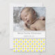 Novo bebê bebê bebê bebê anunciando cartões com fotos personalizados em adorável e elegante amarelo-canário brilhante, cinzas e diversão branca e padrão de bolinhas moderno, totalmente personalizável com a foto do seu bebê e os detalhes de nascimento, uma forma excelente de compartilhar a feliz notícia do nascimento do seu filho com amigos e familiares.