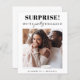 Engraçado anúncio de noivado amigável com sua foto e "Surpresa! Finalmente estamos engajados" em uma mistura de tipografia e roteiro modernos. Personalize com seus primeiros nomes na frente e um noivado personalizado ou salve a mensagem de aviso de data na parte traseira. Adicione seus nomes em um script semelhante a assinatura.