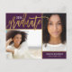 Cartões-postais de anúncio de formatura personalizados e impressos de forma personalizada com suas fotos e texto. Este design moderno e elegante apresenta uma fonte de texto moderna com efeito de folha de ouro falso. Adicione 2 fotos de formandos junto com o ano de formatura, nome e detalhes da escola ou qualquer outro texto personalizado. Use as ferramentas de design para escolher qualquer cor de fundo, adicionar mais fotos ou editar as fontes e cores do texto. Este design sofisticado é perfeito para graduados do ensino fundamental, médio ou superior!