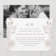 Floral neutro arejado simples e moderno e folhagem com tipografia clássica mudam a data do anúncio de postergamento de casamento com uma foto completa no verso do cartão. Este anúncio elegante é uma maneira sofisticada de informar aos convidados que a data do seu casamento está sendo remarcada devido a circunstâncias imprevistas.