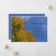 Anuncie seu novo status após o seu casamento privado de setembro, outubro ou novembro recente ou o elopemento secreto com as Folhas de outono sazonais e o Cartão de Anúncio do Casamento do Céu Azul. Este anúncio de casamento ao ar livre apresenta uma fotografia natural da colorida árvore do ácer do açúcar e do céu azul em um dia de outono nítido.