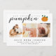Este lindo anúncio de bebê é perfeito para apresentar seu bebê outono / outono! Você também pode enviá-lo como um cartão de feriado de Ação de Graças e cartões de agradecimentos de chá de fraldas! O simples e na moda design apresenta três das suas fotos de família favoritas e uma mistura de tipografia clássica moderna e escrita à mão. Há também uma bela imagem de abóbora para acompanhar o texto.