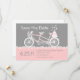 Design de casamento divertido com uma bicicleta tandem coberta de flores. Um bolo de casamento de três andares está no para-choque traseiro e dois pássaros do amor com corações completam o tema. Personalize presentes e papelaria com seu próprio texto personalizado. Em camisetas, sacolas, convites para chá de noiva, anúncios de salvar a data, postagem, planejadores de casamento, lembranças e mais! Original PinkInkArt!