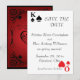Anúncio de Salvar a Data do Baralho dos Reis e Rainhas. Com o Rei de Espadas e a Rainha de Copas