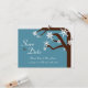 Datas de salvar azuis sazonais com um design de árvore adornada com flocos de neve.