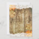 Um fundo de madeira rústica com folhas de outono e uma delicada borda de renda. O anúncio de salve a data faz parte de um conjunto completo de convites de casamento.