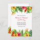 Folhas tropicais exuberantes e flores coloridas criam as bordas deste anúncio tropical de save the date. Perfeito para todos os casamentos com tema havaiano e de verão. (<a href='http://www.freepik.com/free-vector/exotic-floral-background_874892.htm'>Criado por Freepik</a> ). <br/><br/>O cartão é fácil de personalizar com sua redação, fonte, cor da fonte e escolha de seis tipos de papel.<br/><br/>Não é exatamente o que você está procurando? Todos os nossos produtos podem ser personalizados para atender às suas necessidades sem custo adicional.<br/><br/>Basta entrar em contato conosco em askcottonlamb@gmail.com<br/><br/>Produtos coordenados disponíveis: