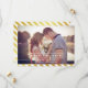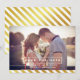 Anúncio de save the date personalizável com padrão de listras diagonais douradas.