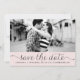 Anúncio de save the date fotográfico caprichoso e feminino com letra miúda preta em fundo rosa bege. Outras cores e itens semelhantes estão disponíveis.