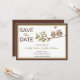 Convites de save the date encantadores com duas corujinhas fofas sentadas num galho com um coração num balão de fala acima delas. Moldura marrom e verde num fundo branco. Personalizado com as suas informações no espaço fornecido. Obtenha os carimbos de Owl Save the Date correspondentes abaixo:
