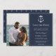 Este Anúncio de Save the Date de Foto Monograma Náutico vem com um design de texto simples, uma âncora náutica simples para os monogramas dos noivos em uma caixa moderna delineada esperando pela sua foto e detalhes do casamento para personalizar. Cores adicionais disponíveis com este design. Perfeito para casais que estão tendo um casamento à beira-mar.