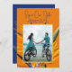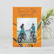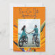 Anúncios de casamento com flores de ave-do-paraíso e modelo de foto para salvar a data. Um cartão atraente com orientação vertical e foto emoldurada sobre um fundo de flores havaianas laranja brilhante. Fontes modernas são usadas em cor azul escuro. Azul escuro combinando na parte de trás com outra imagem floral. Uma foto do casal dispensa a necessidade de nomes, ou adicione nomes às linhas de data e local. Este design também está disponível como download instantâneo.