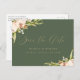 Arranjos florais e folhagens botânicas elegantes em aquarela da floresta e jardim, cartão postal de casamento save the date. O cartão apresenta caligrafia elegante "Save the Date", na frente e no verso.