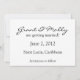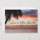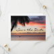 Anuncie seu casamento de destino com este lindo anúncio de save the date de casamento com uma foto de um pôr do sol tropical. Personalize com suas informações.