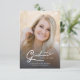 Simples script moderno com duas fotos do Anúncio de Graduação. Apresentando uma foto do tamanho do cheio na frente com uma sobreposição de texto branco e uma foto no verso com detalhes opcionais.