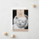 Este anúncio de nascimento de fotos apresenta um padrão rústico de verificação e uma cabeça de veado.