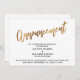 A distinção deste conjunto se deve à fonte moderna de escrita manual utilizada para as frases de destaque. Nesta peça, a fonte manuscrita foi usada para criar um gráfico simples que diz "Anúncio", grande e em negrito. O gráfico foi aprimorado com um efeito de ouro liso falso-metálico. A redação no meu texto de espaço reservado é voltada para um casamento que está sendo adiado, mas se o seu evento for cancelado, este design também pode atender a essa necessidade. Use os campos do modelo para adicionar seus detalhes pessoais e tornar este design moderno e único. O fundo pode ser alterado para qualquer cor que você preferir. Por favor, entre em contato para qualquer solicitação especial ou para obter ajuda na personalização. // 105 //