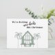 A Decking New Decks Beach House Palms Holiday Mover Anúncio... O baralho de uma casa de praia moderna é adorado com luzes festivas e caixas de presentes, prontos para o primeiro Natal em sua nova casa. As palmeiras apontam para o local do seu novo endereço como estando, por exemplo, na Flórida ou em outro estado do sul com praias. O cartões de natal na frente do cartão diz, "Estamos descendo novos pavimentos este Natal." Todo o texto da placa pode ser facilmente revisado usando o menu suspenso personalizar modelo traseiro.