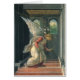 A Anunciação (detalhe) (1485) de Sandro Botticelli é uma pintura de retrato religioso da Era do Renascimento. O arcanjo Gabriel está segurando um galho de árvore com flores e ajoelhado em uma casa de culto. A luz está passando pelas janelas da igreja e as flores que o anjo está segurando, parecem lírios. Sobre o artista: Sandro Botticelli (1445-1510) foi pintor italiano da escola florentina durante o Renascimento Precoce.