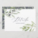 2 ramos de oliveira pintados à mão em aquarela formam o pano de fundo deste cartão de detalhes do casamento. Um design elegante, esta é parte de uma coleção de casamento na moda
