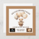 Featuring a charming watercolor teddy bear in a basket holding balloons, this gender-neutral template is perfect for parents looking for a cozy, storybook aesthetic. This design includes a landscape frame for your ultrasound scan, balanced by sweet balloon accents and a modern serif font.
