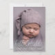 Anuncie sua nova chegada maravilhosa à sua família e amigos com este cartão com fotos bonito e mínimo. Olá mundo em texto elegante está em azul na frente com bolinhas azuis e brancas no verso. Muito fácil de personalizar com seus detalhes pessoais.