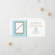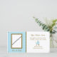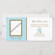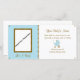 Um simples e elegante cartão com fotos para o anúncio de nascimento de um bebê. esquema de cor azul, castanho e branco. Também apresenta ilustração de carruagem de bebê correspondente. Personalize com uma fotografia da sua nova chegada e da informação do seu bebê.