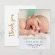 Dourado Script Nosso Cartão-postal de anúncio de nascimento de bebê Blue Baby Boy com obrigado personalizado que você retorna para receber suporte e presentes.
