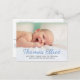 Cartão postal de aviso de nascimento de Blue Baby Boy Photo Birth com obrigado personalizado que você envia de volta para o suporte e presentes.