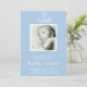Este anúncio de bebê precioso é uma maneira maravilhosa de convidar seus amigos e família a se juntarem a vocês para receber sua nova chegada. Este design usa sua foto no centro com um quadro branco com um fundo azul claro. Logo acima, há um lugar para o monograma ou inicial do seu bebê. Seu texto de anúncio do bebê vai abaixo da foto - apenas adicione os detalhes do seu bebê e você está preparado para anunciar doce bebê!