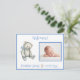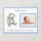 Um urso de pelúcia azul-bebê adorável com tipografia de "Bem-vindo" para apresentar seu novo bebê.