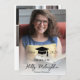 Este moderno convite para apresentação de fotos em na moda apresenta um espaço reservado para 5 fotos e um ícone de Boné de formatura na frente.