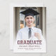 Anúncio de graduação com fotos personalizadas na frente e no verso. A palavra "Formando" aparece em ousada tipografia vermelha e arrogante, com um olhar esportivo ideal para o atleta estudantil, com o nome do formando, a escola e o ano de graduação em sans serif. A parte de trás apresenta uma foto horizontal, com espaço para detalhes sobre a conquista do seu formando e planos futuros em texto dourado sobre fundo burgundy. Uma boa escolha para segundo grau ou formandos.