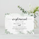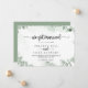 Este anúncio clássico do eucalipto verde tem um belo design rústico. A design apresenta lindas folhas verdes de eucalipto com aquarela. Personalize a placa com os detalhes do seu casamento e use a modelo na parte traseira para anunciar uma alteração de endereço, informações de recepção ou quaisquer outros detalhes que você gostaria de compartilhar.