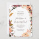 Este anúncio de elopemento floral laranja arborizado é perfeito para o seu pincel rústico, verde escuro e elopemento de jardim de ouro. Design apresenta uma coroa ou buquê de pêssego de cor d'água minimalista, rosa poeirento, roxo e rosas claro florais juntamente com cobre, verde, amarelo e verde cor de ferrugem. As flores nesta design são papoila, rosa e pedônia. O design é ideal para um simples e elegante primavera, verão ou casamento no outono. Por favor, encontre outra papelaria de casamento no resto desta coleção.