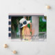 Cartão com fotos de lançamento de gradação com esquema de cores de tendência personalizável para suas especificações de evento. A imagem de exemplo tem a versão do modelo.