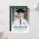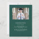 Anúncio de graduação com fotos personalizadas na frente e no verso. A palavra "Formando" aparece em uma tipografia verde ousada com um olhar esportivo ideal para o atleta estudantil, com o nome do formando, a escola e o ano de graduação abaixo em sans serif font. A parte traseira apresenta uma foto horizontal, com espaço para detalhes sobre a conquista do seu formando e planos futuros em texto branco sobre fundo verde. Uma boa escolha para segundo grau ou formandos.