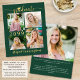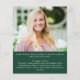 Um anúncio de graduação em ouro, verde e econômico impresso em papel leve de 4,5x5,6" em vez de estoque de papel com falsa tipografia e boné de formatura metálica de escrita em ouro e falsa, personalizado com 5 fotos (uma colagem de fotos de 4 fotos na frente e 1 na parte traseira) contra uma cor verde editável que você pode mudar para uma cor ou cor favorita da escola. O ano de aula é editável por outros anos. O verso apresenta uma foto de sangria de cheio e um campo de texto opcional para o seu texto personalizado com detalhes sobre o seu formando. Ideal para orçamentos conservadores e/ou entrega manual. Envelopes vendidos separadamente na página de pedidos. ASSISTÊNCIA: Para obter ajuda sobre modificação/personalização do design, alteração de cor, transferência do design para outro produto ou se você quiser coordenar itens, entre em contato com o designer ANTES DE PEDIR por meio do Zazzle Chat ou makeitaboutyoustore@gmail.com.