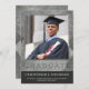 Anúncio formal, falso, de graduação de cinzas gravadas com uma foto. DICA DA FOTO: Para obter resultados mais rápidos/melhores, escolha uma foto com o assunto no meio e/ou pré-plante para uma forma quadrada ANTES de carregar e ela preencherá o espaço de fotos perfeitamente. Entre em contato com o designer por meio do Zazzle Chat ou makeitaboutyoustore@gmail.com se você quiser que este design seja modificado, em outro produto ou quiser coordenar itens.