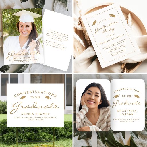 Modern White and Gold Script Graduation SuiteCriado por Akhates Designs