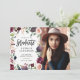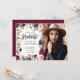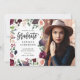 Cartão de parabéns de formando floral cor-de-rosa. Floral, folhagem e fruta pintada à mão, de cor aquosa. Parte de uma coleção