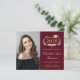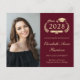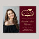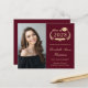 Anúncio moderno de formandos vermelho burgundy, amigável em orçamento, com "Classe de" em uma ilustração clara dourada da coroa de louros que incorpora um boné superior e um diploma, uma foto do formando e seu nome em um elegante roteiro de ouro leve. Adicione sua escola, major, honras ou planos futuros.